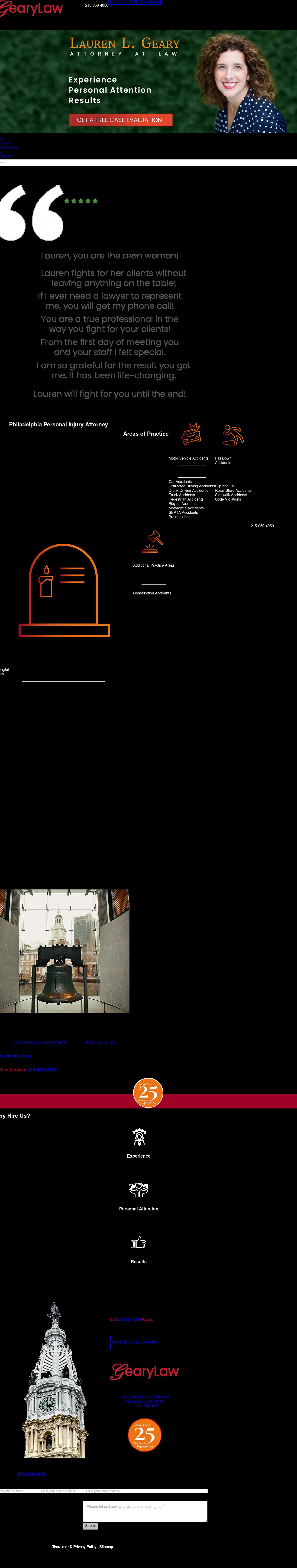 Lauren Levin Geary Attorney at Law Philadelphia Personal Injury Lawyer | Accident Attorney Injured in a car accident or slip-and-fall in the Philadelphia area? Let the law office of Lauren Levin Geary help. Call 800-577-8002 for a free consultation.