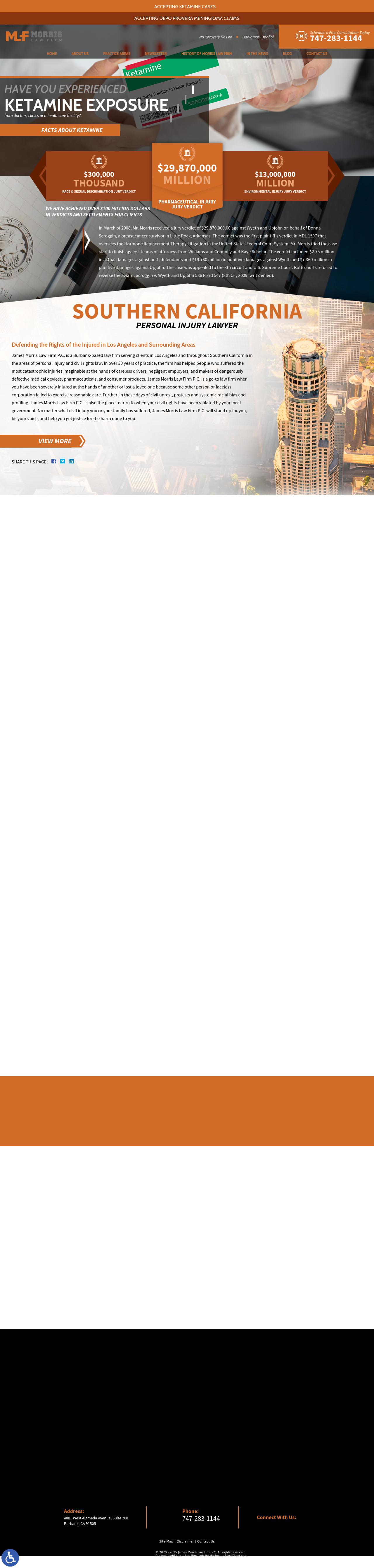 Morris Law Firm Morris Law Firm Morris Law Firm is a Burbank-based law firm serving clients in Los Angeles and throughout Southern California in the areas of personal injury and civil rights law. Morris Law Firm is a Burbank-based law firm serving clients in Los Angeles and throughout Southern California in the areas of personal injury and civil rights law. In over 30 years of practice, the firm has helped people who suffered the most catastrophic injuries imaginable at the hands of careless drivers, negligent employers, and makers of dangerously defective medical devices, pharmaceuticals, and consumer products. Morris Law Firm is a go-to law firm when you have been severely injured at the hands of another or lost a loved one because some other person or faceless corporation failed to exercise reasonable care. Further, in these days of civil unrest, protests and systemic racial bias and profiling, Morris Law Firm is also the place to turn to when your civil rights have been violated by your local government. No matter what civil injury you or your family has suffered, Morris Law Firm will stand up for you, be your voice, and help you get justice for the harm done to you.