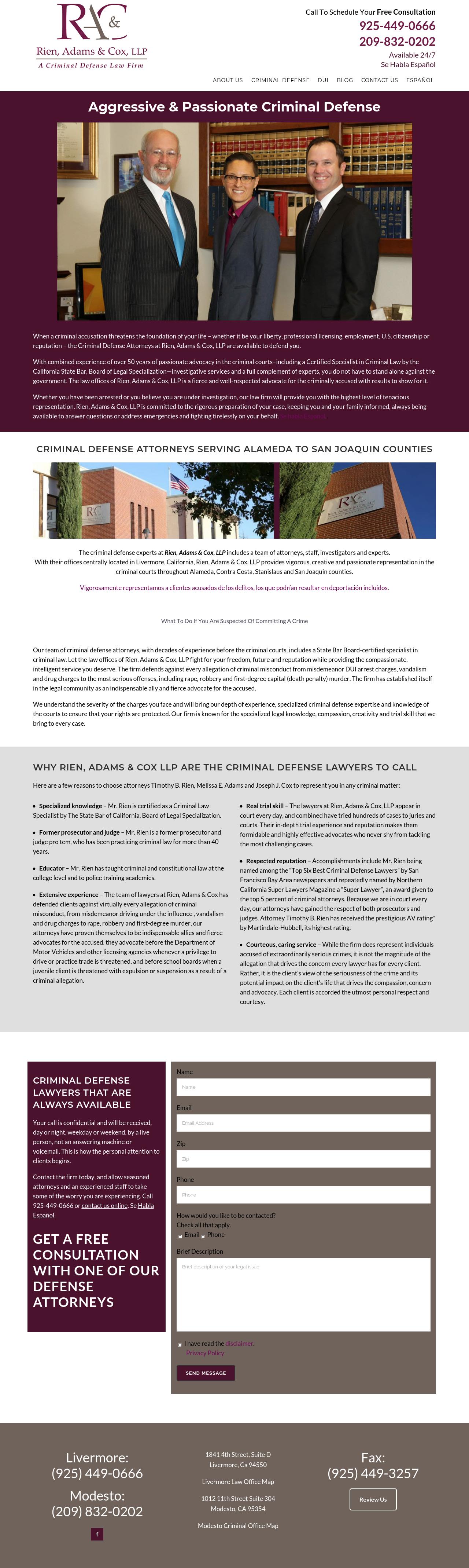 The Law Offices of Timothy B. Rien Livermore CA Criminal Defense Lawyer| DUI and Drug Crimes Law Firm Free initial consultation with a Livermore CA criminal defense lawyer from The Law Offices of Timothy B. Rien. Call 925-344-4634 24/7.